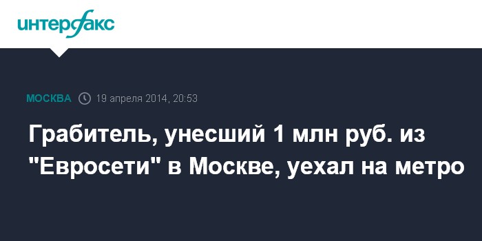 Грабитель, унесший 1 млн руб. из "Евросети" в Москве, уехал на метро
