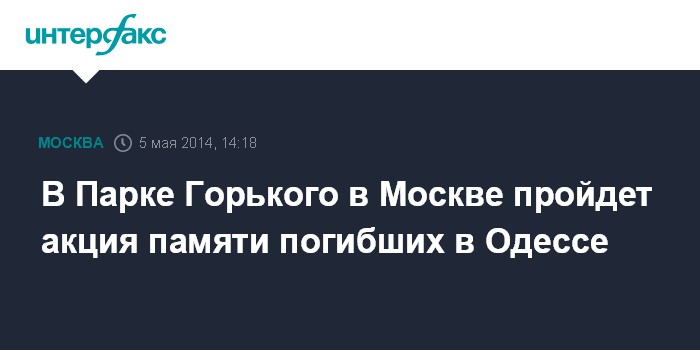 Москва. 5 мая. INTERFAX.RU - Дирекция ЦПКиО им.Горького в Москве согласовала проведение акции под названием "День траура по погибшим в доме профсоюзов в Одессе 2 мая" на территории, отведенной под гайд-парк.