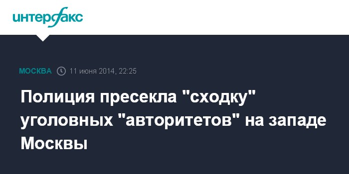 Москва. 11 июня. INTERFAX.RU - Сотрудники Главного управления уголовного розыска МВД России пресекли так называемую "сходку" лидеров и авторитетов уголовной среды, на которой планировалось обсуждение передела сфер влияния и перераспределение денежных средств, сообщило МВД России в среду.