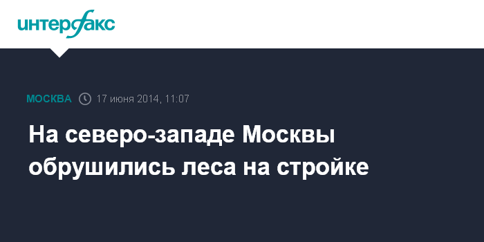 Москва. 17 июня. INTERFAX.RU - Строительные леса обрушились на северо-западе столицы, по предварительным данным, есть пострадавшие, сообщил "Интерфаксу" источник в правоохранительных органах во вторник.