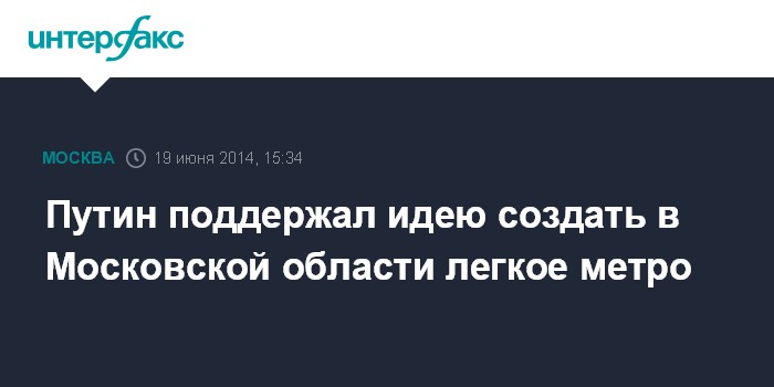 Москва. 19 июня. INTERFAX.RU - Губернатор Московской области Андрей Воробьев на встрече с президентом России Владимиром Путиным попросил его поддержать разработку концепции проекта строительства наземного метро в Подмосковье.
