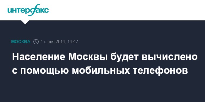Москва. 1 июля. INTERFAX.RU - До конца года московские власти намерены получить информацию о том, сколько людей постоянно проживает в различных районах Москвы, используя данные о передвижениях сотовых абонентов. Об этом сообщает М24.ru, ссылаясь на заммэра столицы по вопросам градостроительной политики Марата Хуснуллина. Официальные данные о количестве жителей столицы не совпадают с теми, которые получают мобильные компании. Подобные меры необходимы для вычисления реального населения города. Согласно Росстату население Москвы составляет около 12 миллионов, но некоторые эксперты считают, что с учетом мигрантов оно может достигать 20 миллионов человек.
