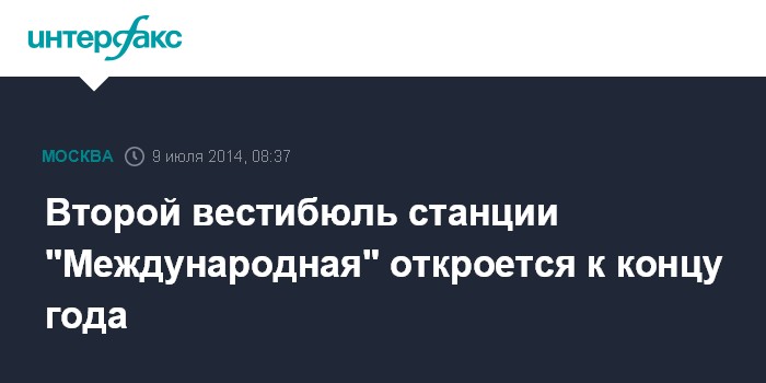 Москва. 9 июля. INTERFAX.RU - Второй вестибюль станции "Международная" Филевской линии, расположенной на территории делового центра "Москва-Сити", должен быть открыт в нынешнем году, сообщил журналистам начальник столичного метрополитена Иван Беседин.