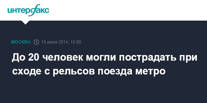 Москва. 15 июля. INTERFAX.RU - В результате схода с рельсов трех вагонов метро на станции "Славянский бульвар" могло пострадать до 20 человек, сообщил "Интерфаксу" источник в правоохранительных органах столицы.