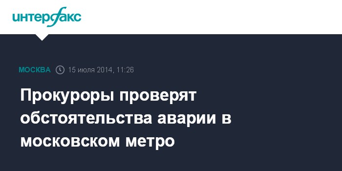 Москва. 15 июля. INTERFAX.RU - Прокуратура Москвы начала проверку по факту аварии в столичном метрополитене, сообщили "Интерфаксу" в пресс-службе прокуратуры города во вторник. Причины и обстоятельства аварии, повлекшие человеческие жертвы, выясняются, сказал официальный представитель ведомства Елена Россохина.