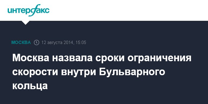 Москва. 12 августа. INTERFAX.RU - Ограничение скорости движения транспорта внутри Бульварного кольца до 40 километров в час, в случае принятия такой инициативы, может быть введено в начале 2015 года, заявил заместитель руководителя Центра организации дорожного движения (ЦОДД) правительства Москвы Александр Поляков.