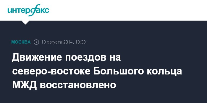 Москва. 18 августа. INTERFAX.RU - Движение поездов на северо-востоке Большого кольца Московской железной дороги (МЖД), где на переезде грузовой состав врезался в автомобиль, восстановлено.