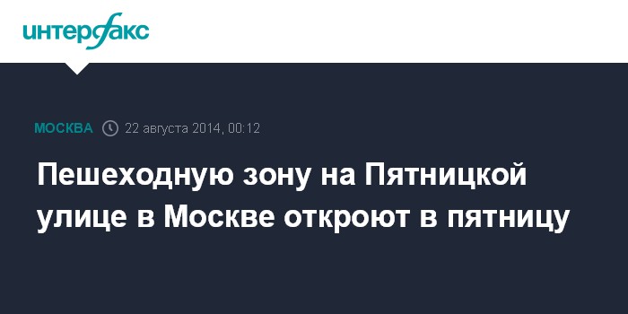 Москва. 21 августа. INTERFAX.RU - Еще одна пешеходная зона появится в историческом центре Москвы - в пятницу после реконструкции и благоустройства открывается Пятницкая улица.