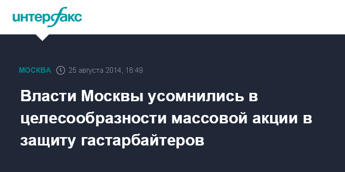 Москва. 25 августа. INTERFAX.RU - Власти Москвы не получали заявку от организаций мигрантов на проведение многотысячного митинга, но сомневаются, что проведение подобной акции целесообразно.