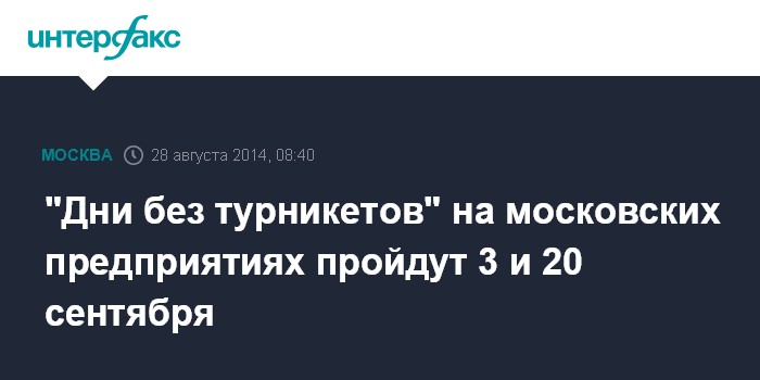 "Дни без турникетов" на московских предприятиях пройдут 3 и 20 сентября