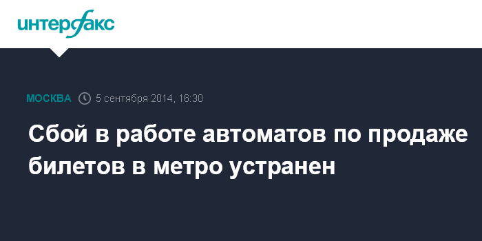 Москва. 5 сентября. INTERFAX.RU - Технический сбой автоматов по продаже билетов в московском метро устранен, сообщили "Интерфаксу" в пятницу в пресс-службе метрополитена.