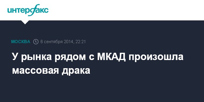 Москва. 6 сентября. INTERFAX.RU - В субботу на 14-м километре МКАД недалеко от рынка "Садовод" произошла массовая драка, в результате которой в полицию доставлены 40 человек, сообшили "Интерфаксу" в ГУ МВД России по Москве.