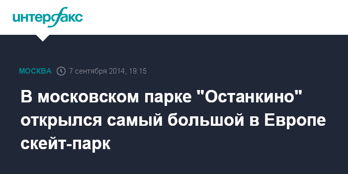Москва. 7 сентября. INTERFAX.RU - Мэр Москвы Сергей Собянин открыл самый большой скейт-парк Европы в Останкинском парке на северо-востоке столицы.