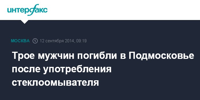 Москва. 12 сентября. INTERFAX.RU - Трое мужчин, обнаруженных накануне мертвыми в котельной заброшенного пионерлагеря в Домодедовском районе Подмосковья, скончались после распития спиртосодержащей жидкости для омывания автостекол, сообщил "Интерфаксу" источник в правоохранительных органах.
