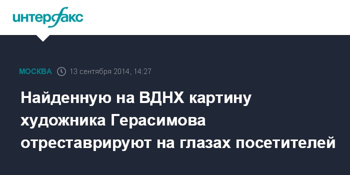 Москва. 13 сентября. INTERFAX.RU - В ходе противоаварийных работ на цокольном этаже павильона номер один ВДНХ недавно была обнаружена картина художника Александра Герасимова размером 6,75 на 11 метров.