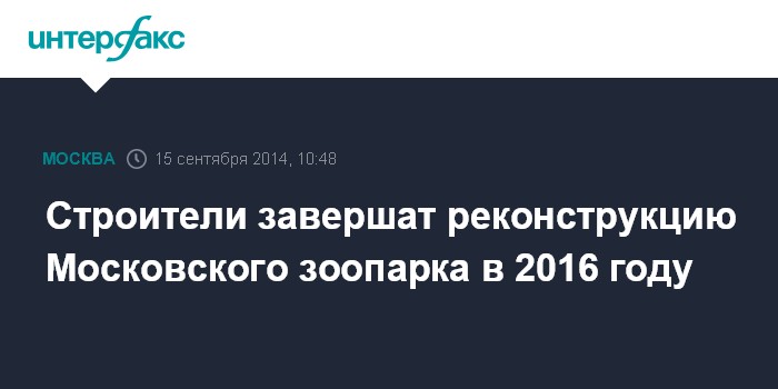 Москва. 15 сентября. INTERFAX.RU - Комплексная реконструкция Московского зоопарка будет завершена в 2016 году, сообщил "Интерфаксу" в понедельник руководитель столичного департамента строительства Андрей Бочкарев.
