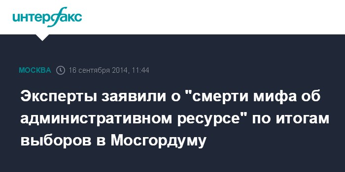Москва. 16 сентября. INTERFAX.RU - Выборы в Московскую городскую думу развеяли легенду об использовании административного ресурса, считает председатель правления Центра политических технологий Борис Макаренко.