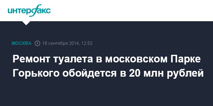 Ремонт туалета в московском Парке Горького обойдется в 20 млн рублей