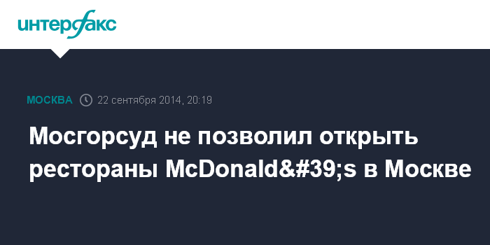 Мосгорсуд не позволил открыть рестораны McDonald's в Москве