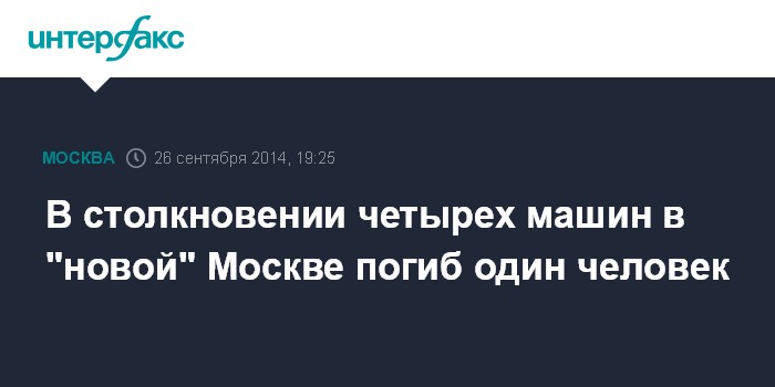 Москва. 26 сентября. INTERFAX.RU - Один человек погиб, еще шестеро пострадали в результате ДТП в "новой Москве", сообщили "Интерфаксу" в пятницу в пресс-службе столичного управления ГИБДД.