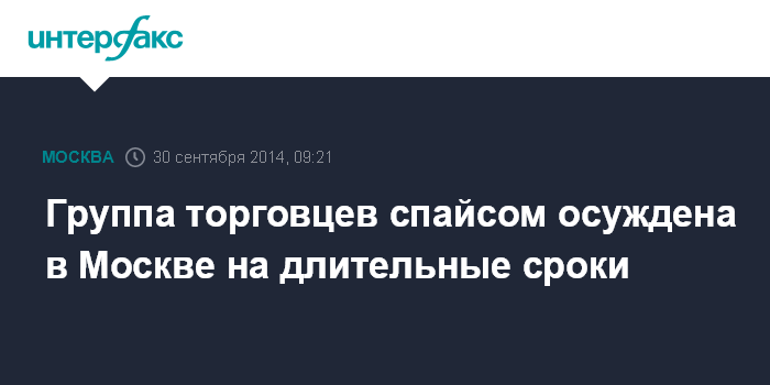 Москва. 30 сентября. INTERFAX.RU - Суд в Москве приговорил к длительным срокам лишения свободы девятерых торговцев спайсами, организовавших продажу наркотиков через интернет с помощью круглосуточной диспетчерской службы, сообщили "Интерфаксу" во вторник в пресс-службе столичного управления ФСКН.
