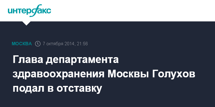 Москва. 7 октября. INTERFAX.RU - Руководитель департамента здравоохранения Москвы Георгий Голухов подал в отставку по собственному желанию, сообщил во вторник "Интерфаксу" источник, знакомый с ситуацией.