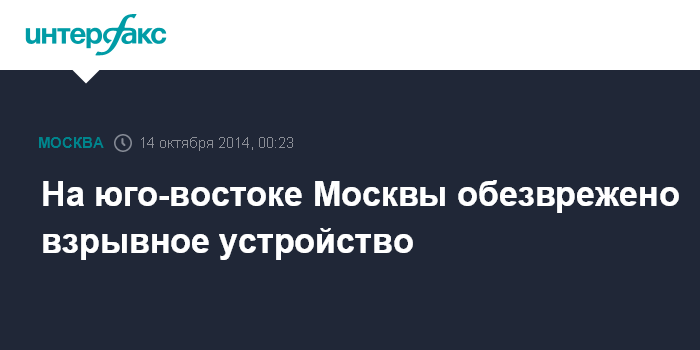 Москва. 14 октября. INTERFAX.RU - Взрывотехническая группа ФСБ ликвидировала мощное взрывное устройство, обнаруженное на территории государственного бюджетного учреждения на юго-востоке Москвы, сообщил "Интерфаксу" источник в правоохранительных органах.