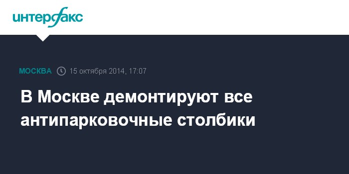 Москва. 15 октября. INTERFAX.RU - Московские власти в рамках благоустройства территории столицы демонтируют антипарковочные столбики, установленные в Москве в июле этого года, поскольку в них больше нет необходимости, сообщают в среду "Известия". Об этом рассказал мэр Москвы Сергей Собянин в среду на встрече с журналистами.