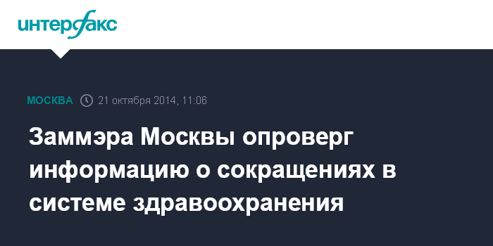 Заммэра Москвы опроверг информацию о сокращениях в системе здравоохранения