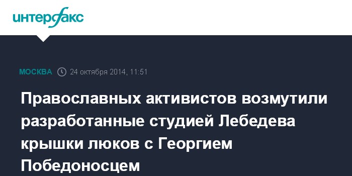 Москва. 24 октября. INTERFAX.RU - Союз православных хоругвеносцев назвал кощунством проект канализационных люков для Москвы с изображением Георгия Победоносца, разработанный Студией Артемия Лебедева.