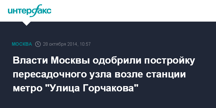 Власти Москвы одобрили постройку пересадочного узла возле станции метро "Улица Горчакова"