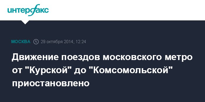 Москва. 29 октября. INTERFAX.RU - Движение от станции московского метро "Курская" до станции "Комсомольская" приостановлено из-за падения человека на пути, сообщили "Интерфаксу" в пресс-службе столичного департамента транспорта и развития дорожно-транспортной инфраструктуры.