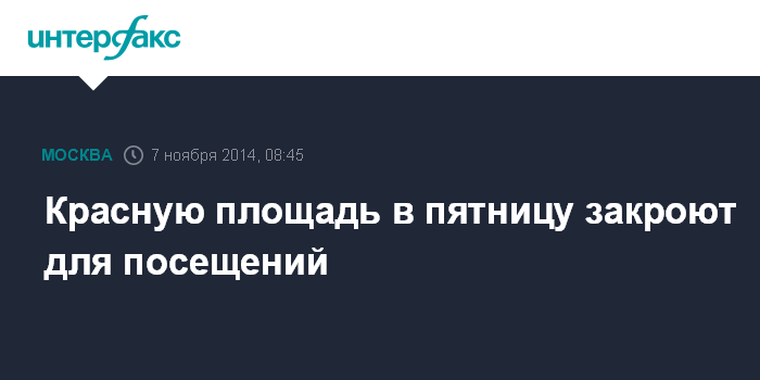 Москва. 7 ноября. INTERFAX.RU - Красная площадь будет закрыта в пятницу для посещений, сообщает Федеральная служба охраны.