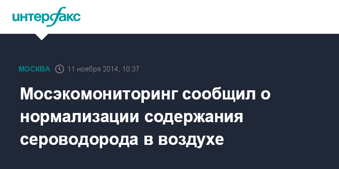 Москва. 11 ноября. INTERFAX.RU - В ночные и утренние часы концентрации в атмосферном воздухе Москвы сероводорода и диоксида серы стабилизировались в пределах обычных наблюдаемых значений, сообщает ГПБУ "Мосэкомониторинг" во вторник.
