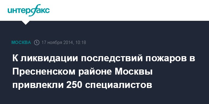 К ликвидации последствий пожаров в Пресненском районе Москвы привлекли 250 специалистов