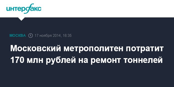 Московский метрополитен потратит 170 млн рублей на ремонт тоннелей