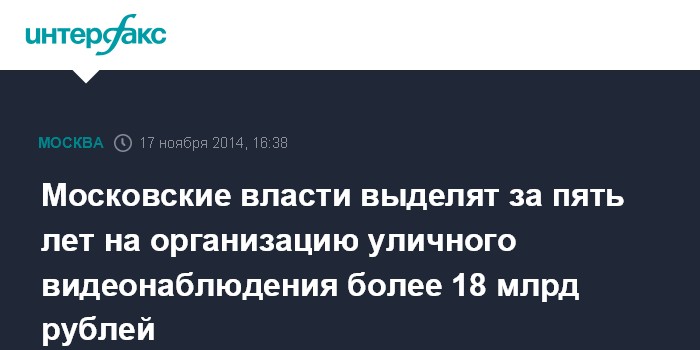 Московские власти выделят за пять лет на организацию уличного видеонаблюдения более 18 млрд рублей