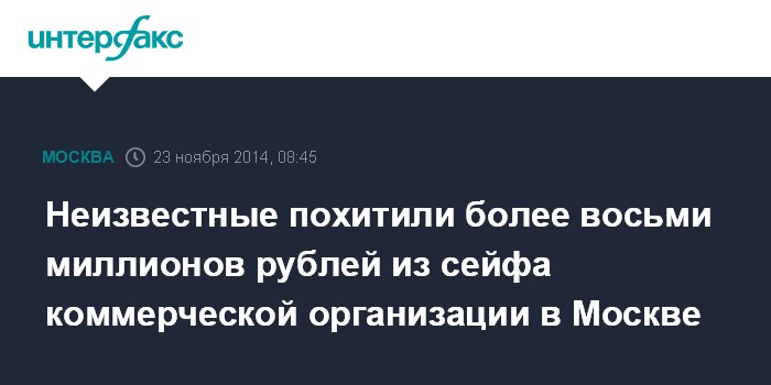 Неизвестные похитили более восьми миллионов рублей из сейфа коммерческой организации в Москве