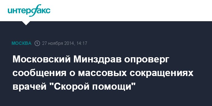 Москва. 27 ноября. INTERFAX.RU - Глава департамента здравоохранения Москвы Алексей Хрипун опроверг слухи о массовых сокращениях врачей "Скорой помощи".