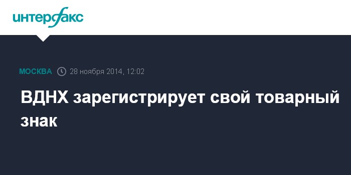 Москва. 28 ноября. INTERFAX.RU - ОАО "ВДНХ" зарегистрирует собственный товарный знак, пишет M24.ru со ссылкой на источник в компании.