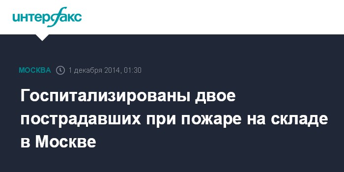 Москва. 1 декабря. INTERFAX.RU - Два человека пострадали в результате пожара в складском здании на севере столицы, сообщил "Интерфаксу" источник в медицинских кругах столицы.