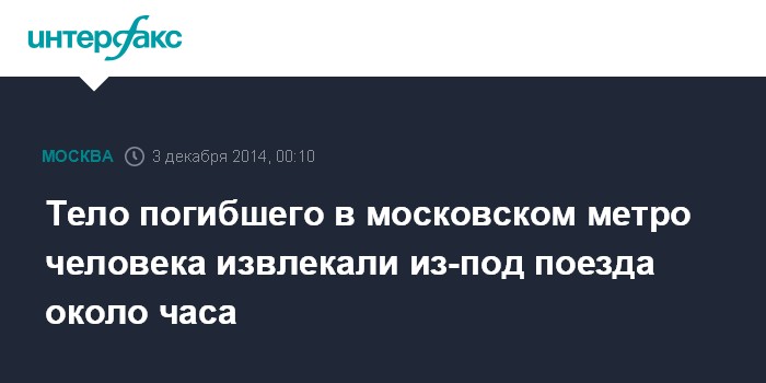 Москва. 3 декабря. INTERFAX.RU - Около часа потребовалось для извлечения тела пассажира московского метро, упавшего под поезд на станции "Щукинская" Таганско-Краснопресненской линии.