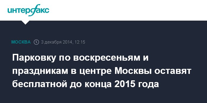 Москва. 3 декабря. INTERFAX.RU - Парковка по воскресеньям и праздникам в зоне платной парковки останется бесплатной до конца 2015 года - проект постановления