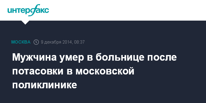 Мужчина умер в больнице после потасовки в московской поликлинике