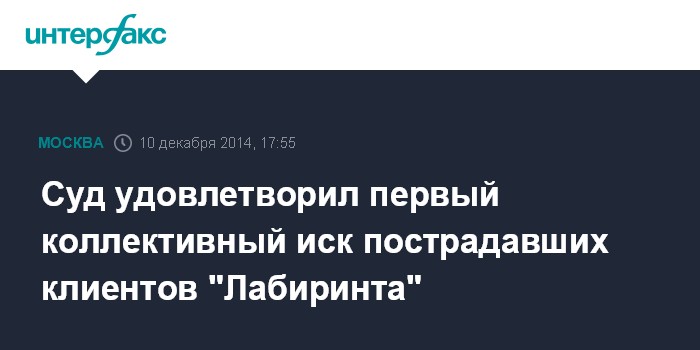 Суд удовлетворил первый коллективный иск пострадавших клиентов "Лабиринта"