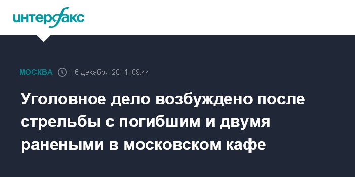 Москва. 16 декабря. INTERFAX.RU - Следователи возбудили уголовное дело после ночной стрельбы в кафе на юго-западе Москвы, в результате которой один человек погиб и двое были ранены.