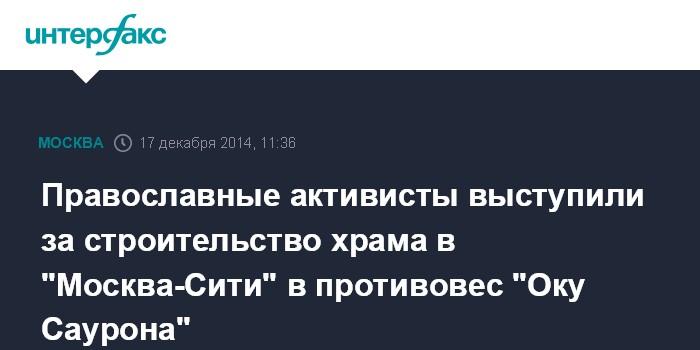 Православные активисты выступили за строительство храма в "Москва-Сити" в противовес "Оку Саурона"