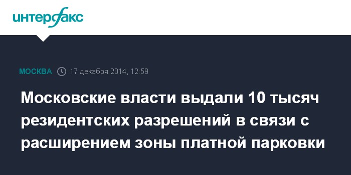 Москва. 17 декабря. INTERFAX.RU - Столичные власти уже выдали около 10 тысяч резидентных разрешений жителям зоны, где парковка станет платной с 25 декабря, заявил руководитель ГКУ "Администратор Московского парковочного пространства" Александр Гривняк.