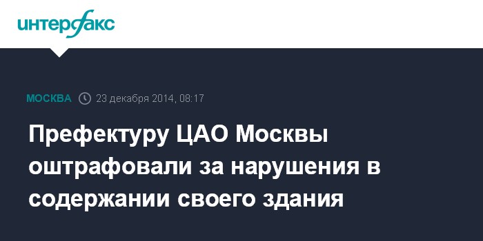 Префектуру ЦАО Москвы оштрафовали за нарушения в содержании своего здания