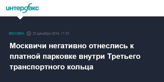 Москва. 23 декабря. INTERFAX.RU - Москвичи недовольны платной парковкой в пределах Третьего транспортного кольца, а принудительная эвакуаци и возможность введения платы за въезд в Москвы вызвали различные реакции, сообщили "Интерфаксу" социологи.